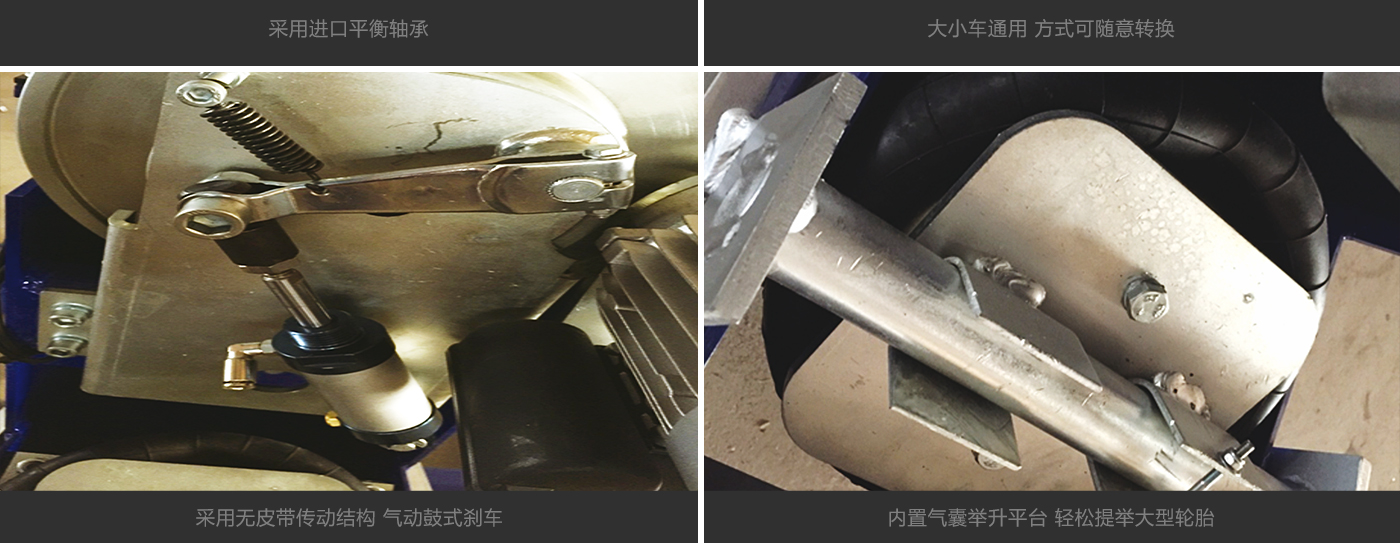 轮胎平衡机 特点: • 配置故障诊断系统,可监测关键元件状态。 • 内置多种平衡模式,适合不同车轮结构。 • 采用进口平衡轴承。 • 大小车通用,方式可随意转换。 • 采用无皮带传动结构,气动鼓式刹车。 • 内置气囊举升平台,轻松提举大型轮胎。 |