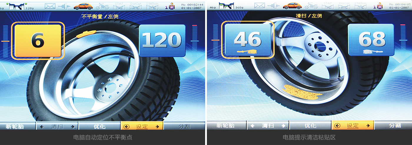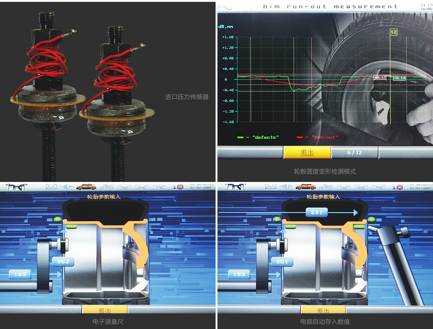 3D轮胎平衡机 特点: • 进口压力传感器。 • 电脑控制,定点刹车,自动找点贴铅。 • 轮毂圆度变形检测模式。 • 512相位精度激光测量。 • 电子测量尺。 • 电脑自动存入数值。 • 电脑自动寻找粘贴点。 • 电脑推荐粘贴模式。 • 电脑自动定位不平衡点。 • 电脑提示清洁粘贴区。 • 6点激光线辅助贴铅和LED照明功能。 • 轮辋圆度检测功能。 |